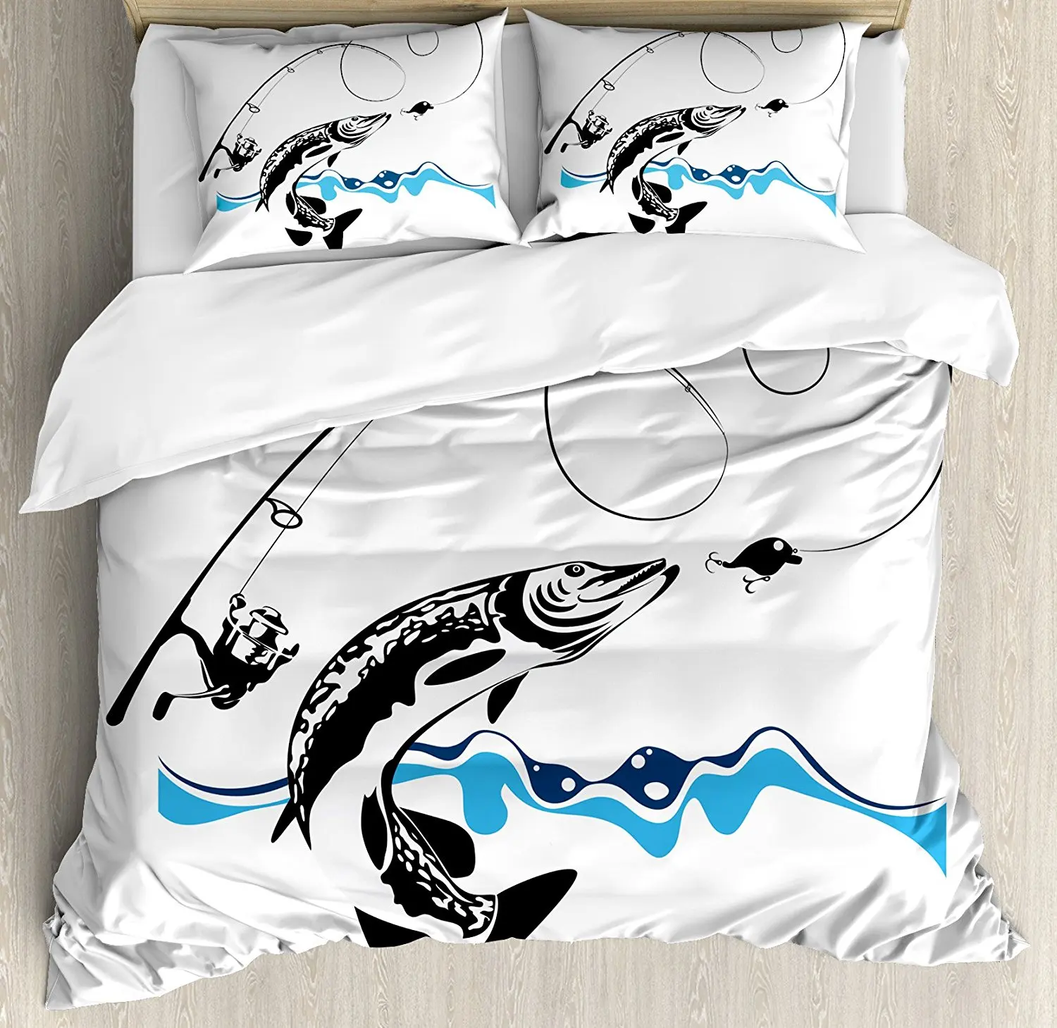 0 Response to " Fishing Duvet Cover Set Big Pike Fish Catching Wobblers Reel Trap in River Raptorial Predator Hunti"